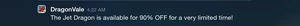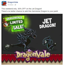 - The Jet Dragon'due south sale concluded on November 23, 2015 when the price rose from 150 to 1500 gems.