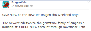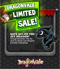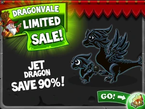- The Jet Dragon'south sale ended on November 18, 2013, when the price rose from 150 to 1500 gems.